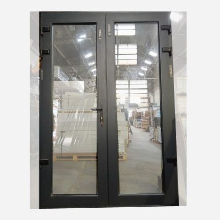 Puerta Batiente Doble Exterior Pvc Gris Dvh 1.48x 2.12