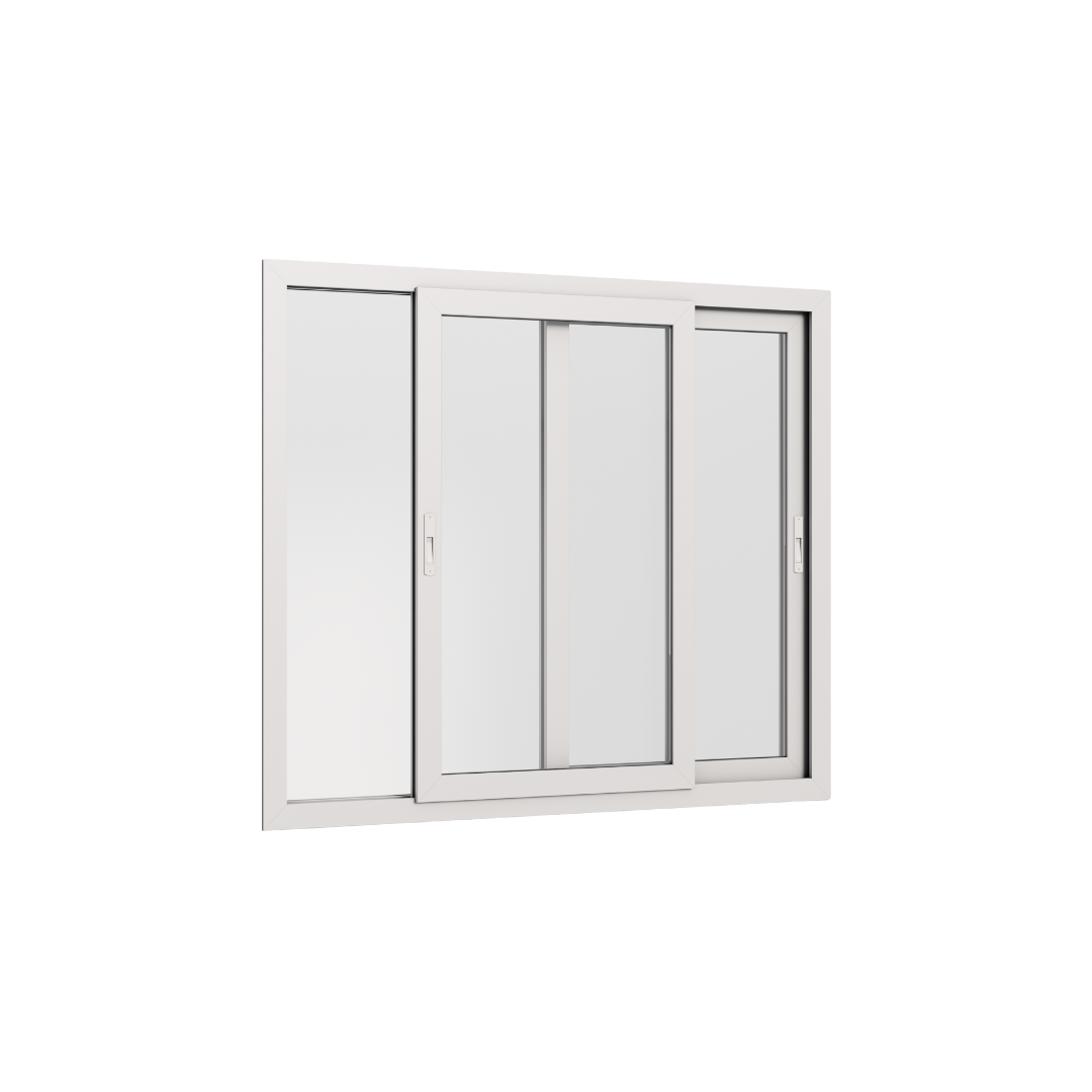 Elegante y resistente ventana corrediza de doble hoja, diseñada con perfilería blanca para un acabado moderno y sofisticado.